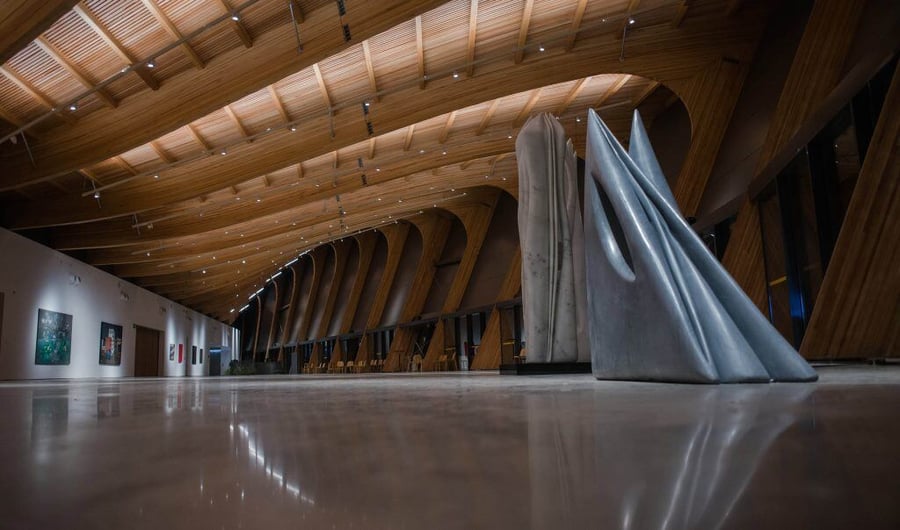Grandis Timber feature ceiling and wall in this remarkable Gallery Space.
